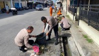 Polres Meranti Terjun Lakukan Gotong Royong Sinergitas Penanggulangan Bencana.